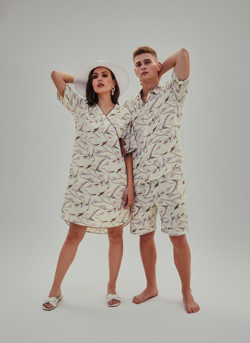 Refresh your warm-weather wardrobe with this effortlessly stylish Viscose Rayon Co-ord Set. Crafted from soft, breathable viscose rayon, the fabric drapes beautifully on the body while offering a smooth, lightweight feel ideal for all-day comfort. Featuring an all-over abstract leaf-inspired print in soft pastel tones, this set captures a relaxed yet contemporary aesthetic.